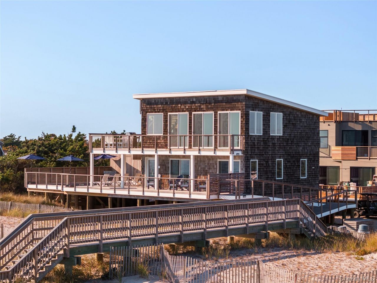 Introducing a rare oceanfront masterpiece in the coveted enclave of Ocean Bay Park on Fire Island, ideally positioned along the border of Point O' Woods. This custom-built home offers an exceptional level of privacy, complete with semi-private beach access via a dedicated walkway.Designed to capture the essence of coastal living, the home showcases unobstructed, panoramic views of the Atlantic Ocean and the Great South Bay from nearly every vantage point. A stunning roof deck crowns the property, delivering breathtaking 360-degree water views-perfect for sunrise coffees, sunset cocktails, and stargazing under the open sky.Whether you're relaxing beside the pool or enjoying the serenity of your own stretch of beach, the natural beauty surrounding you is unparalleled. Watch dolphins glide by, whales breach in the distance, and waves roll endlessly to shore-all from the comfort of your private retreat.Seamlessly blending indoor and outdoor living, this one-of-a-kind residence offers tranquility, exclusivity, and an elevated Fire Island lifestyle in one of its most desirable communities.